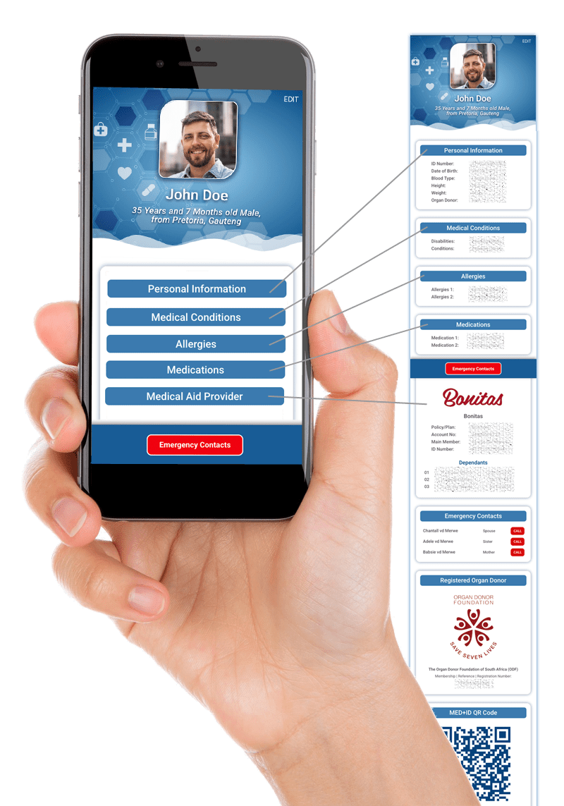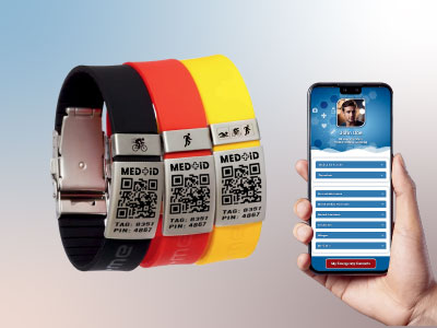 MED+ID is a digital medical information solution that provides first responders with instant access to vital health information when every second counts. By simply scanning the NFC chip or QR code on MED+ID products—such as bracelets, keyrings, stickers, or cards—emergency personnel gain rapid access which enables them to make informed decisions and ensures you receive the right care without delay. Having your medical information readily available offers true peace of mind for you and your loved ones.